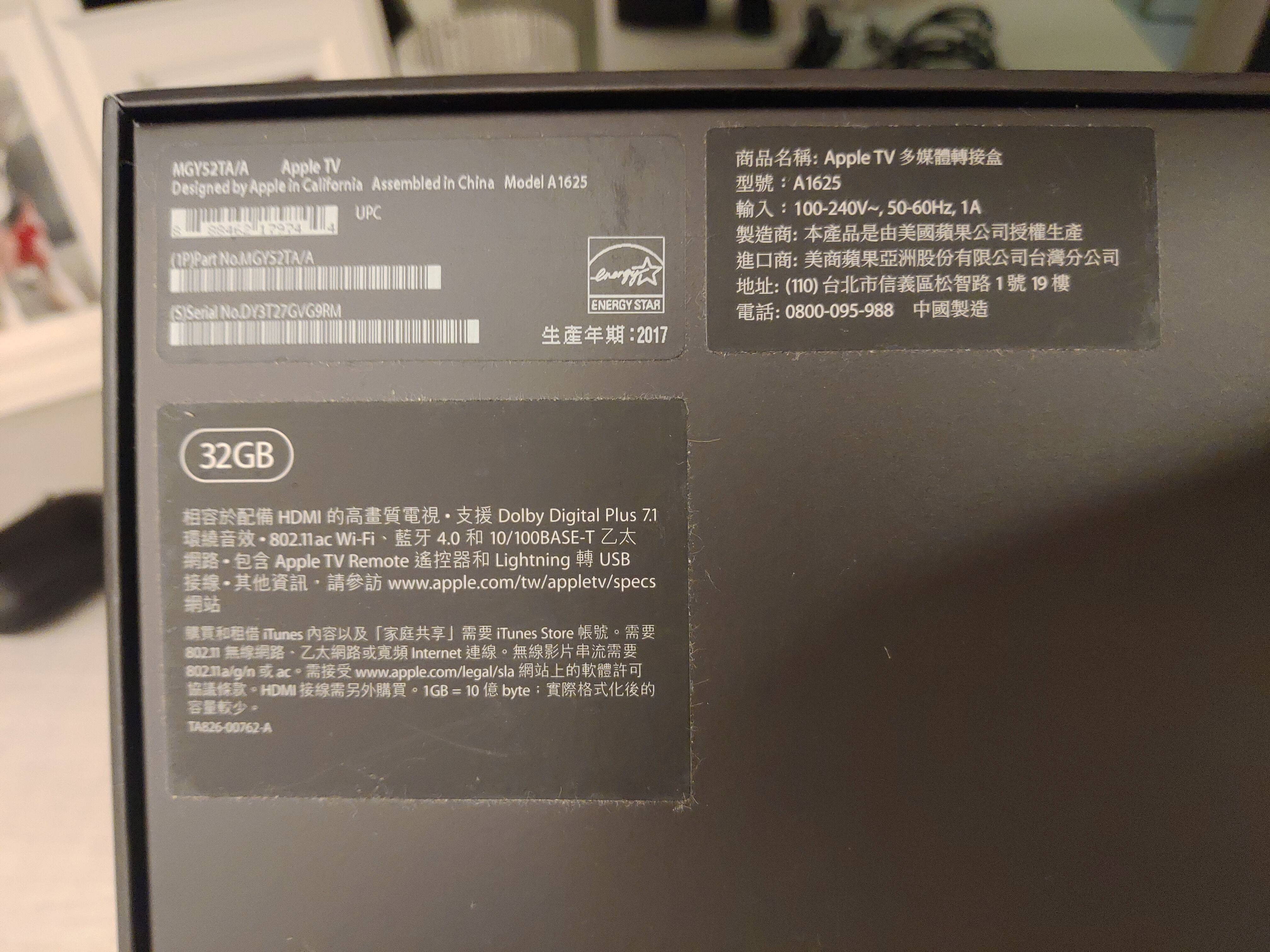 [物品型號]:Apple TV HD 32G
