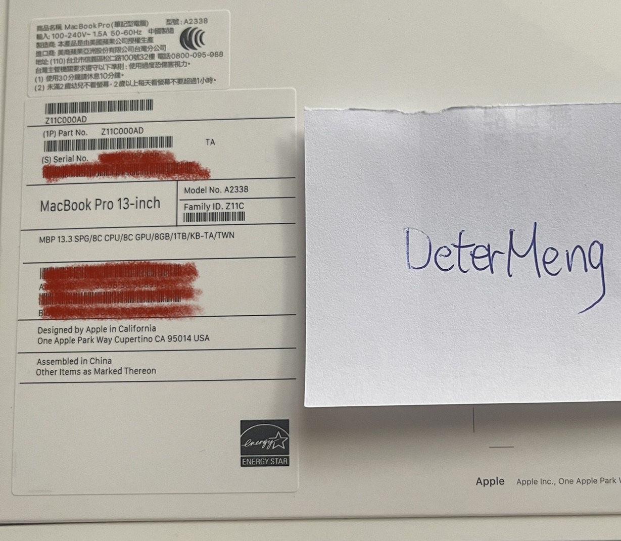 [販售] 台北 全新Macbook Pro 13" 8C/8G/8G/1T已回收