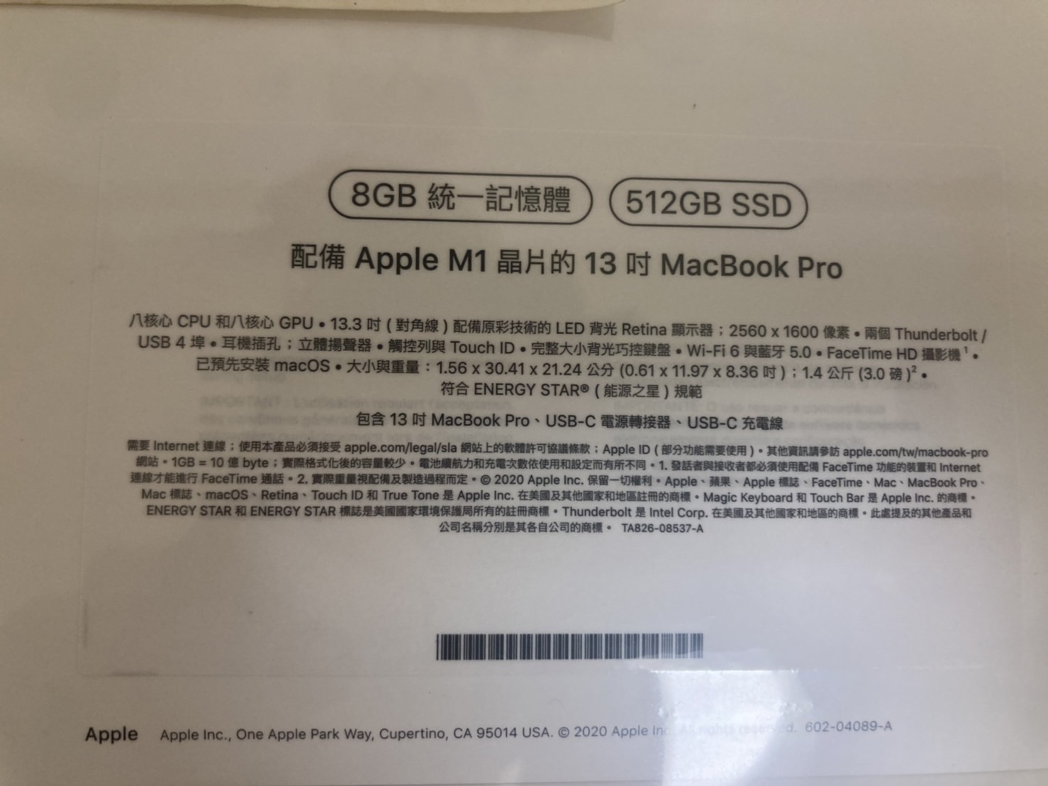 8G/512GB SSD/M1晶片