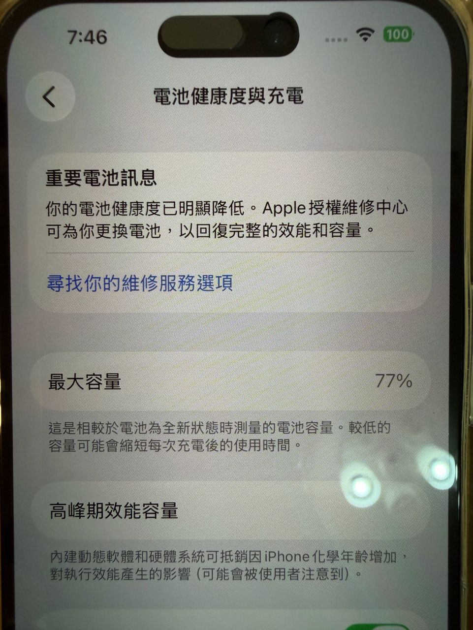 4. 電池健康度77% (如圖)。
