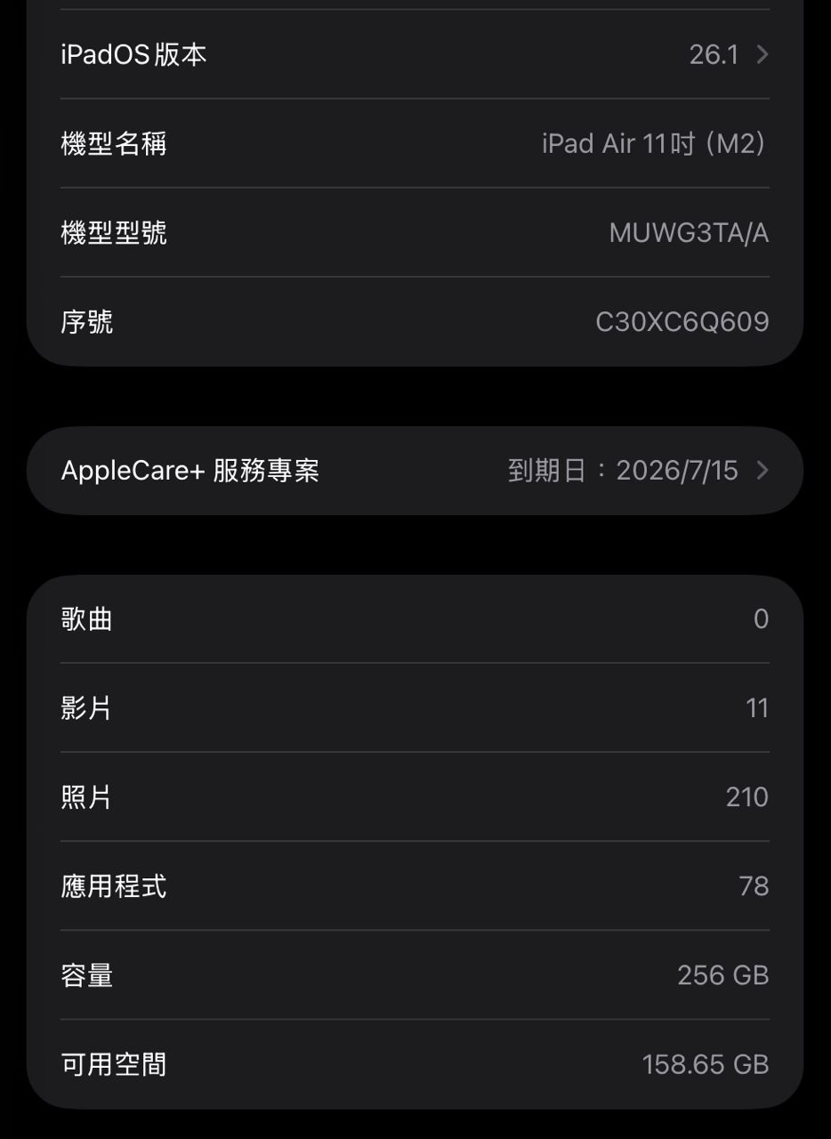 [販售] 雙北iPad Air M2 11” 256G WiFi 太空灰
