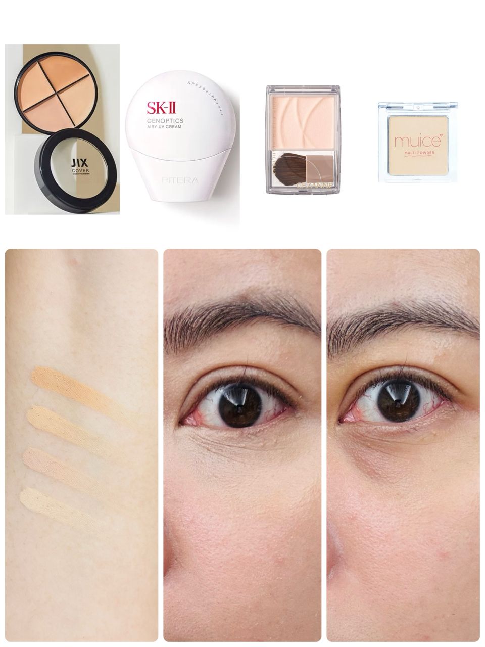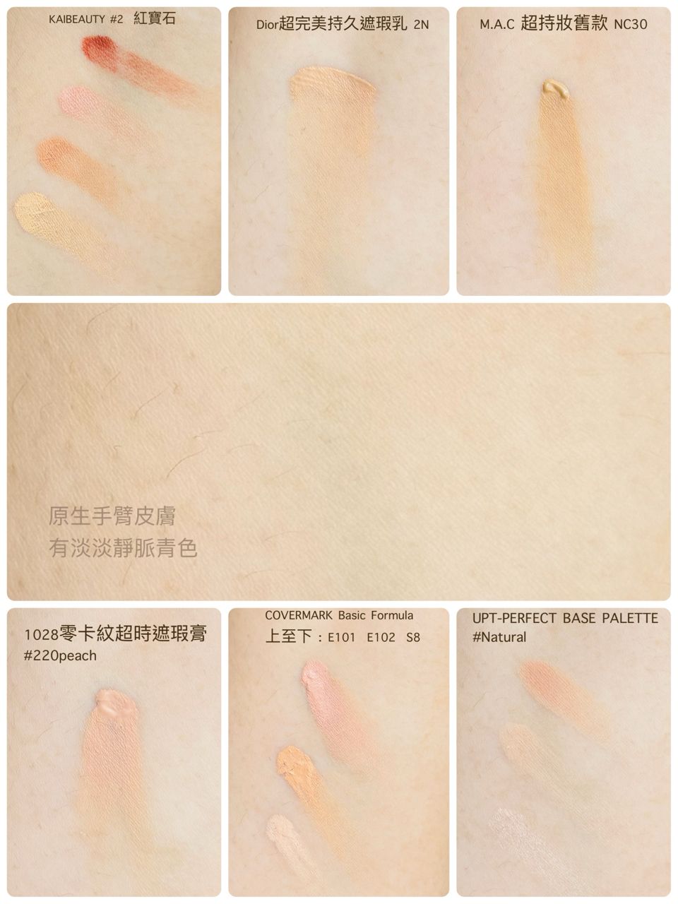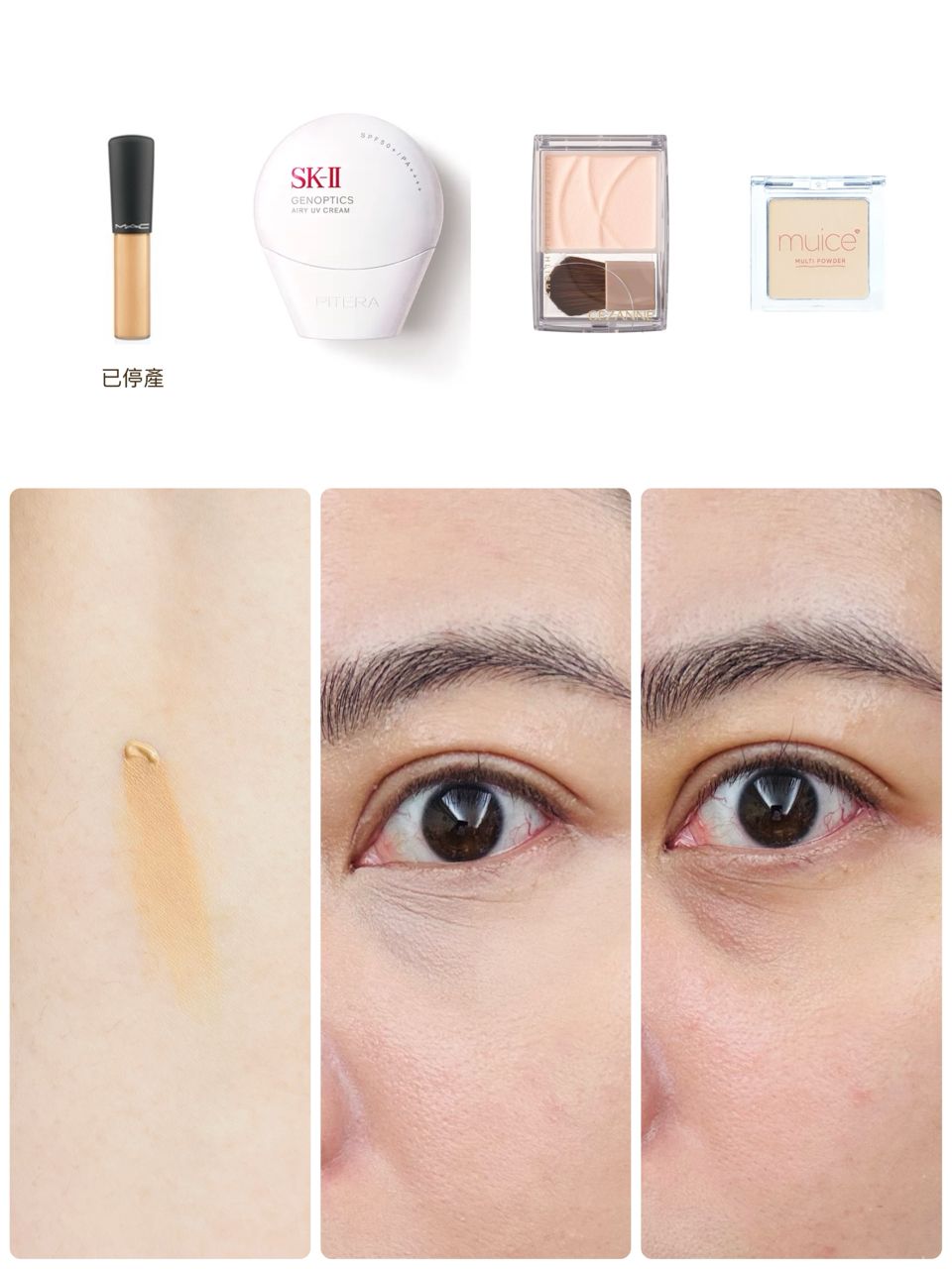 以下是遮瑕產品色號組合,以及上妝後的效果