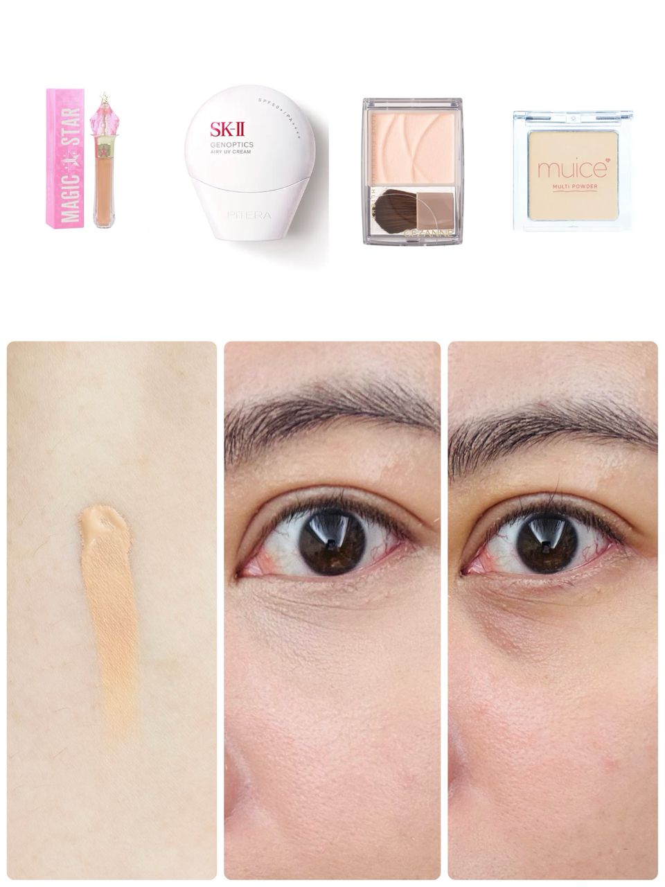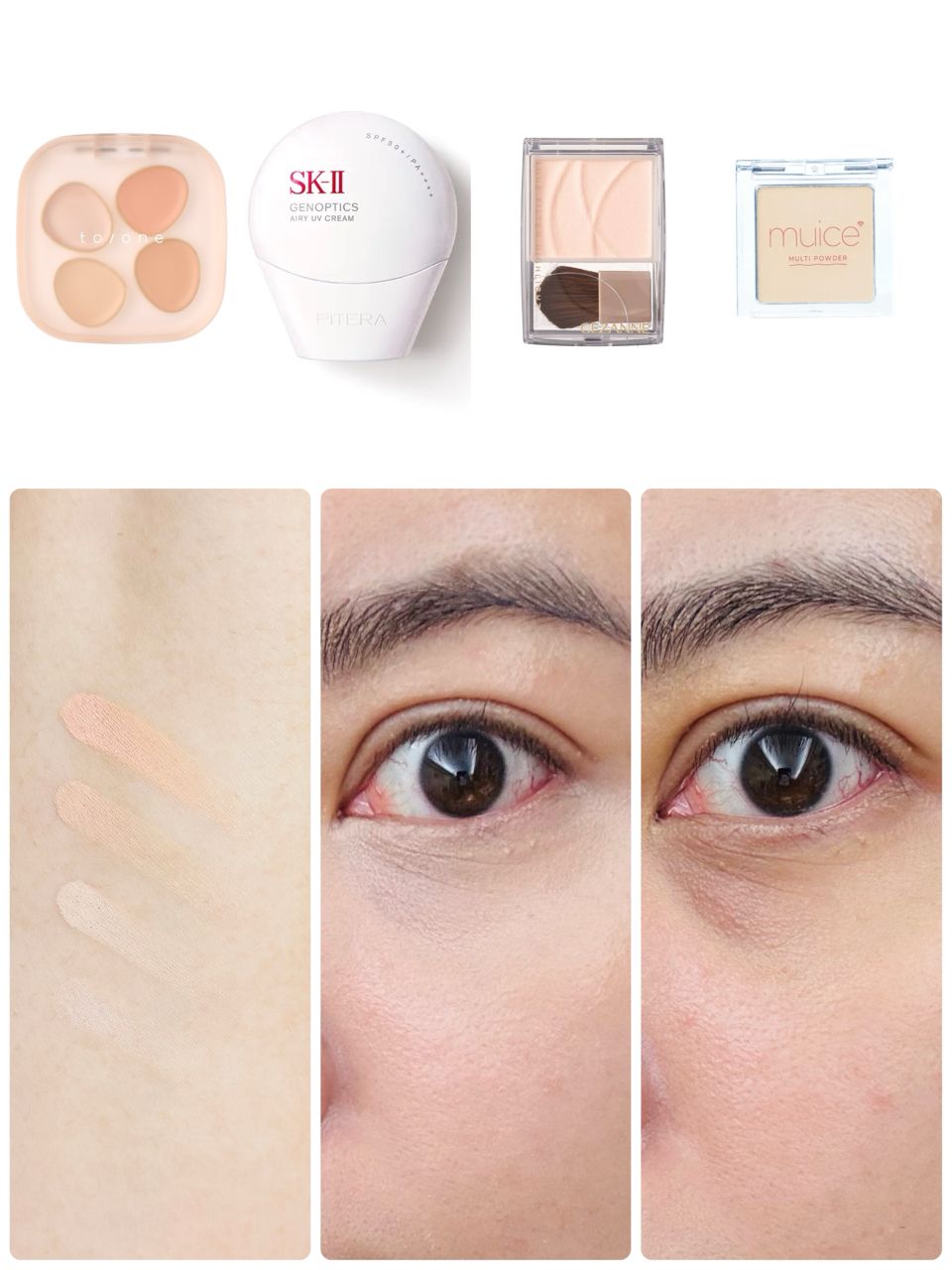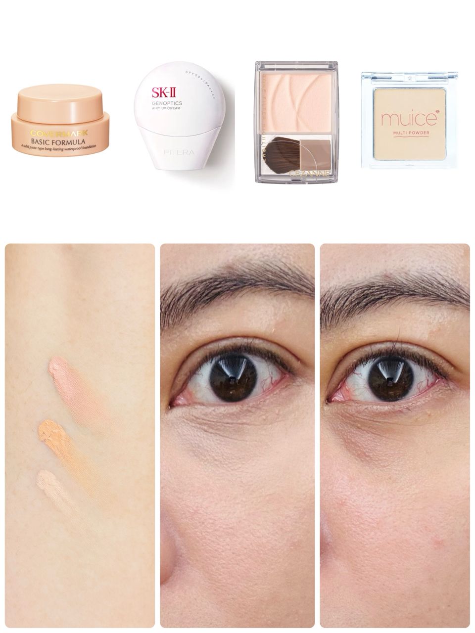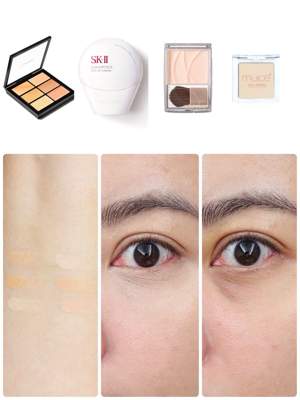 以下是遮瑕產品色號組合,以及上妝後的效果