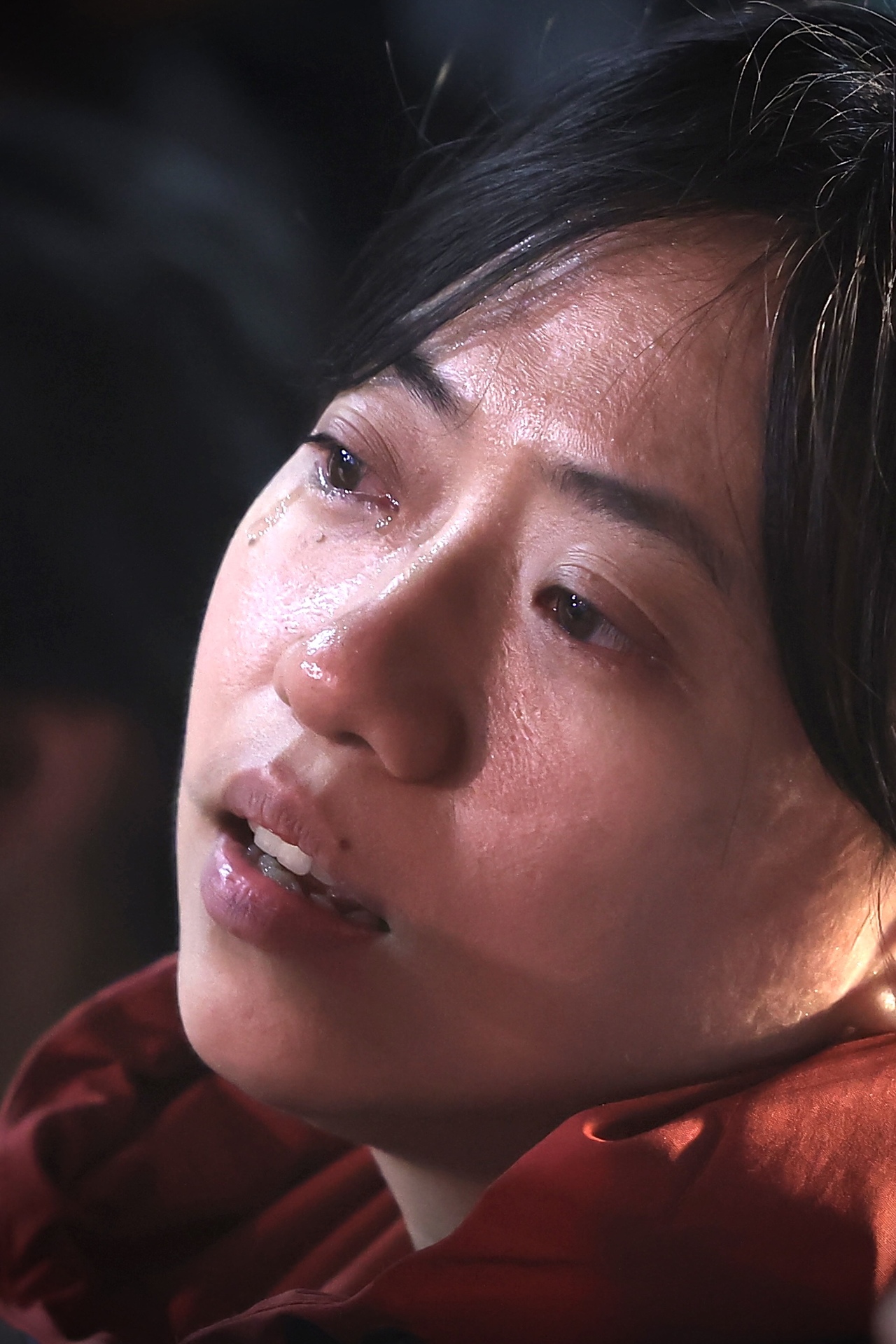 民眾黨總統候選人柯文哲票數落後,總部外支持者激動落淚。(記者葉信菉/攝影)