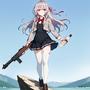 : 艾莉的白髮在微風中飄逸,與背景的藍天白雲相映成趣,給人一種夢幻般的感覺。