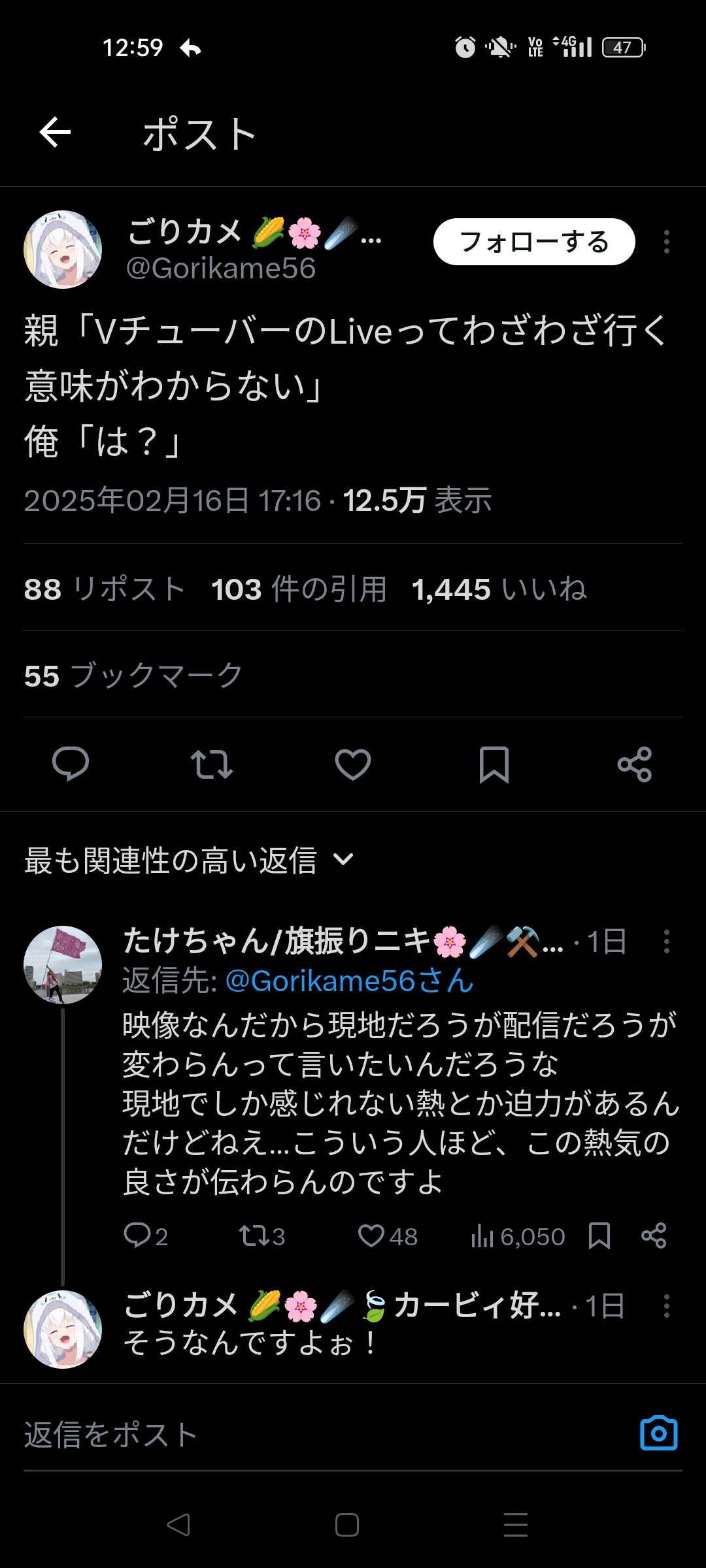 推特主說自己爸媽質疑為何要去看VT的現場LIVE