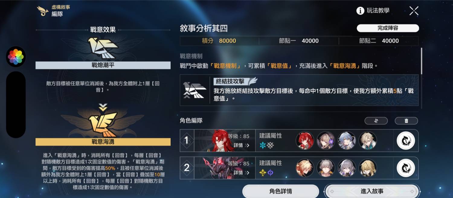 上半試了姬子+黑塔結果打不動二層,換0+1銀枝才勉強打過(用景元專應該也可)