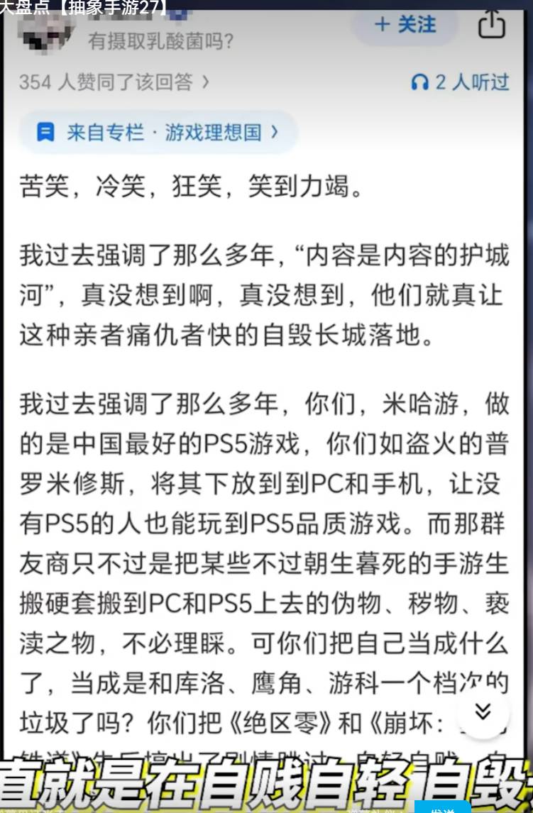 亲者痛仇者快的自毁长城落地。我过去强调了那么多年,你们,米哈游,做的是中国最好的