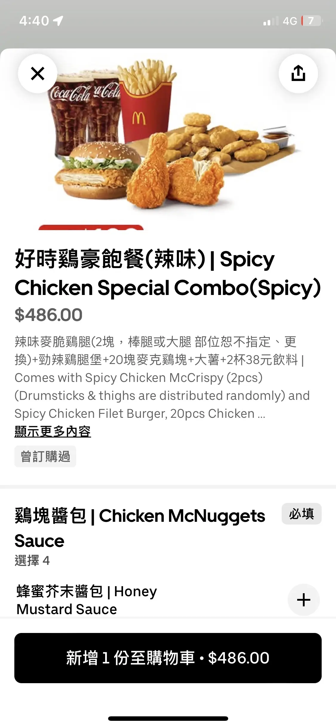 謝謝你的四包大薯兩杯可樂 20塊雞塊