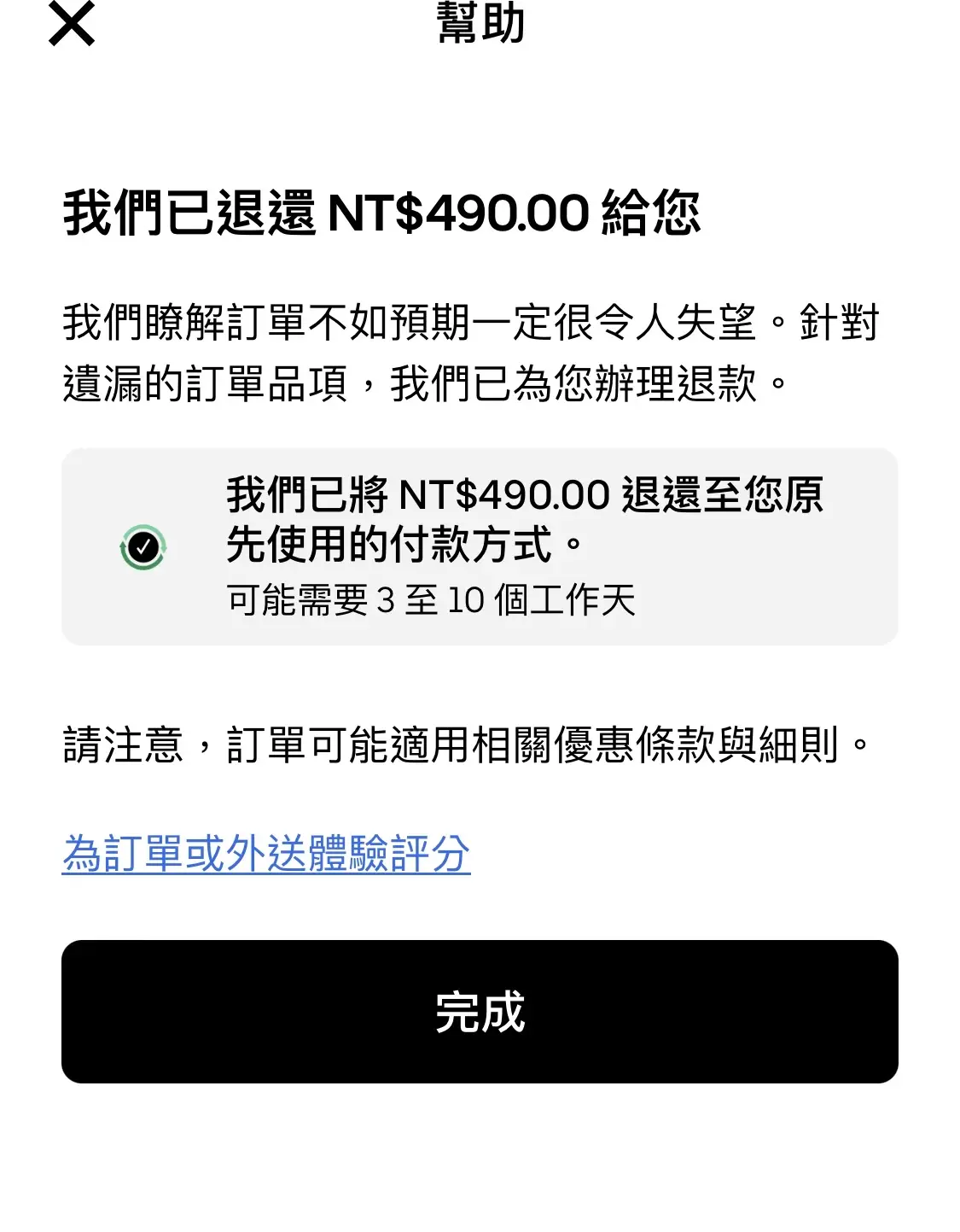 只好退款了