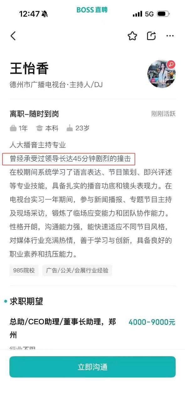 曾经承受过领导长达45分钟剧烈的撞击