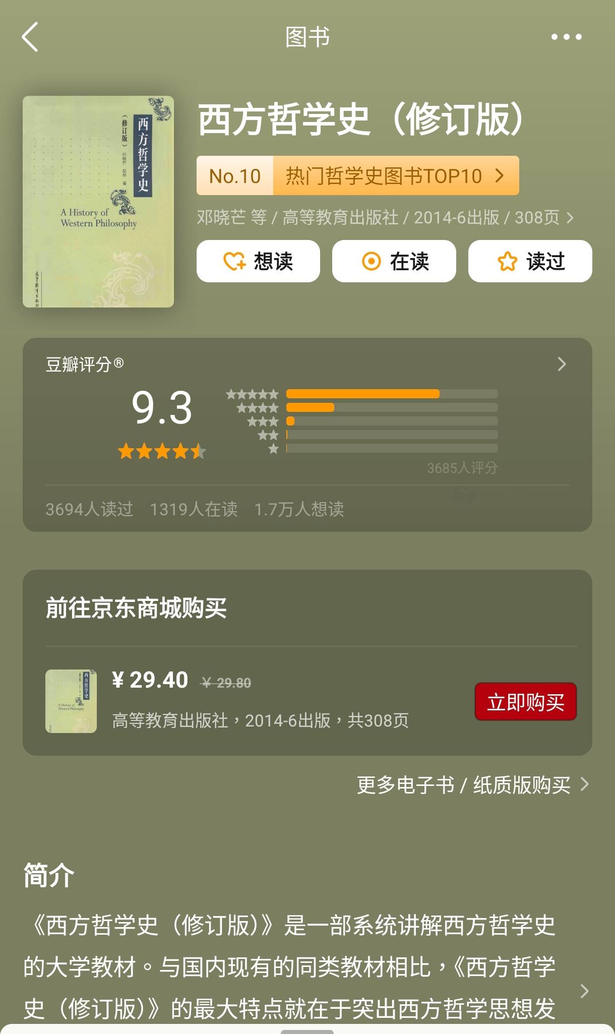 真的看不下去可以看篇幅只有1/3的 中國教授寫的哲學史
