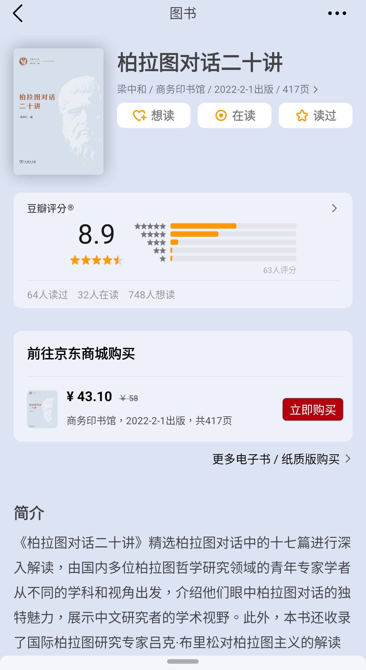 簡單 看完這本也可以去看柏拉圖自己寫的著作 好看