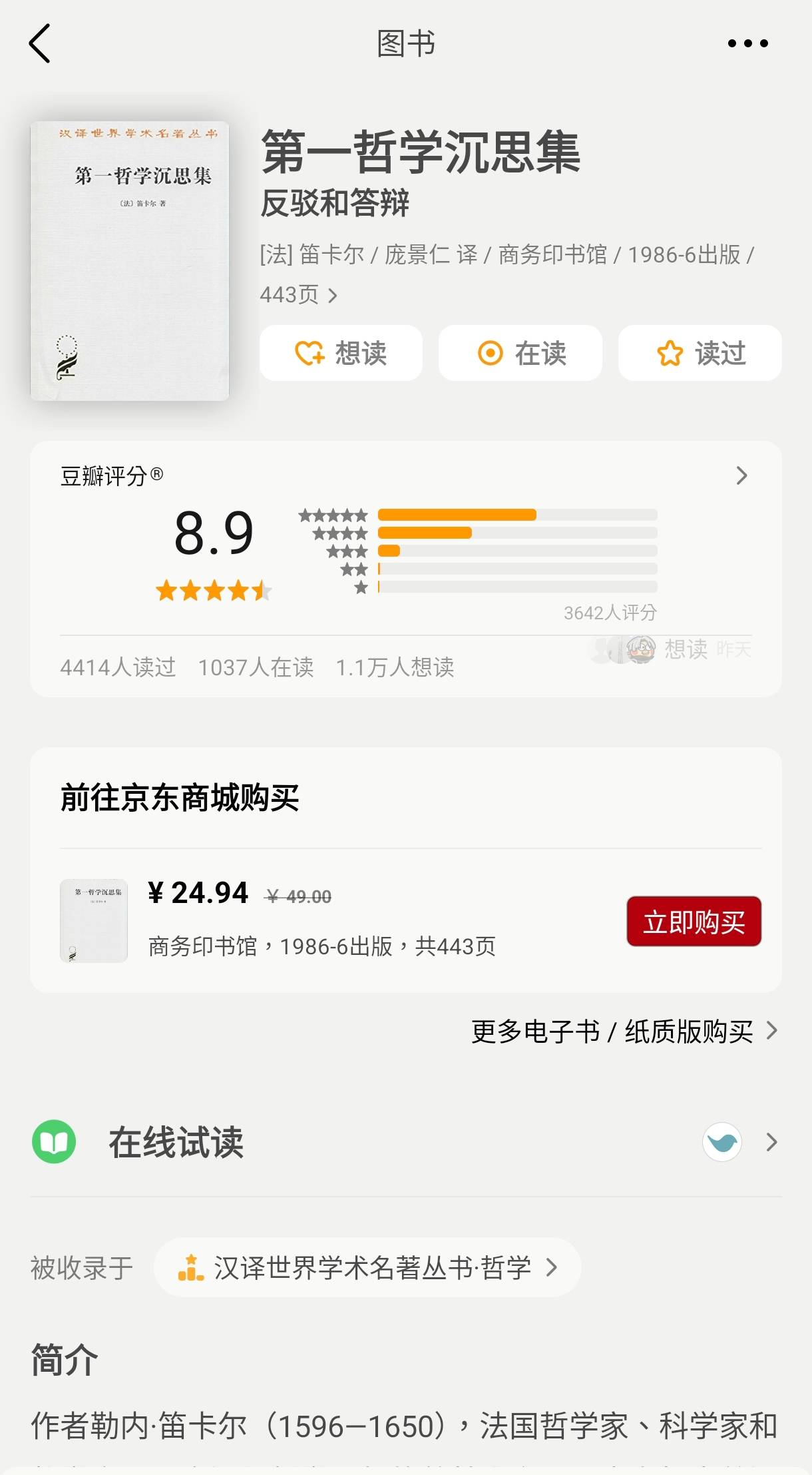 笛卡爾 直接看第一哲學沉思錄+談談方法+一本導讀書