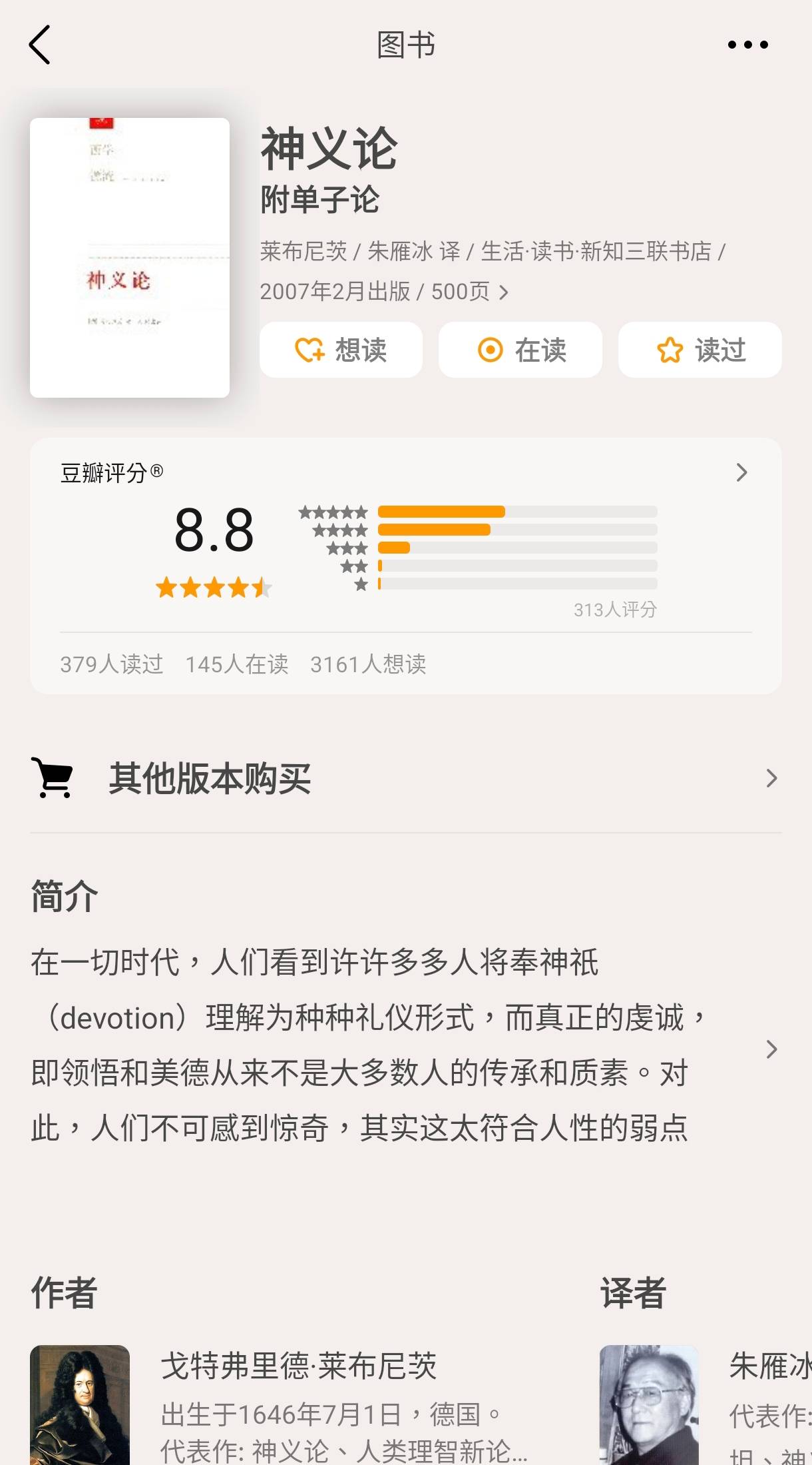 萊布尼茨 單子論+神義論