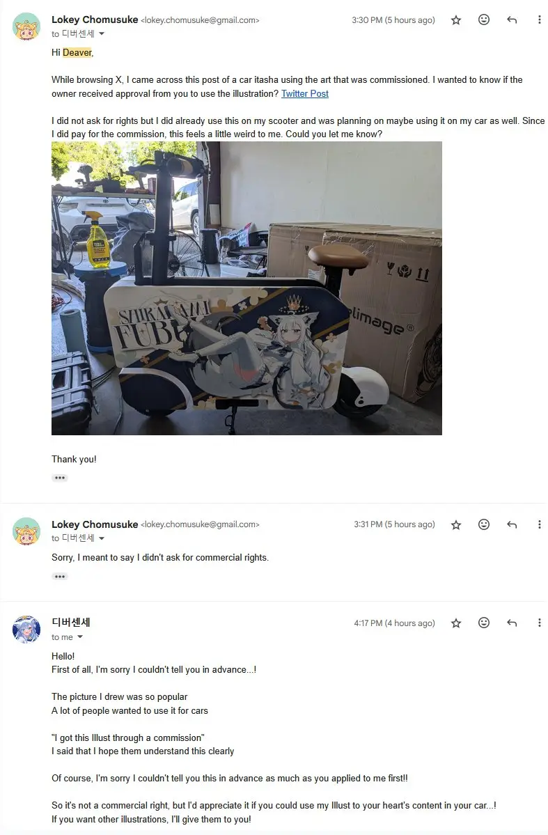 : 然後別的齁粉看到就問畫師能不能用來痛車,畫師只有說這是別人委託的圖