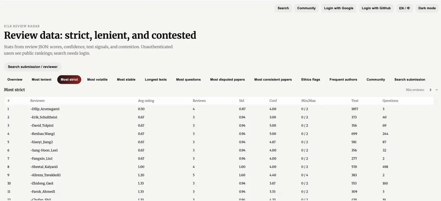 一下就能知道誰是最寬容的審稿人