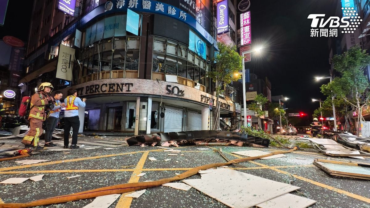 整層樓都因氣爆炸裂,玻璃噴濺到對街約20公尺遠,餐廳招牌、風管散落整路。整起事件