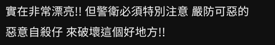 實在非常漂亮!! 但警衛必須特別注意 嚴防可惡的 惡意自殺仔來破壞這個好地方!!