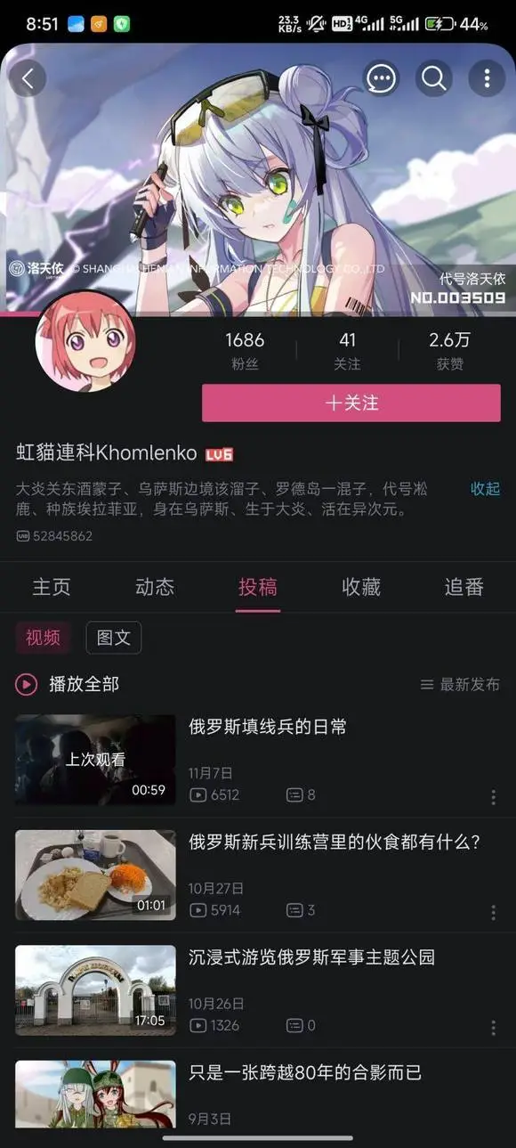 他的B站帳號【虹貓連科Khomlenko的个人空间-哔哩哔哩】 https://b23.tv/YjW77sU