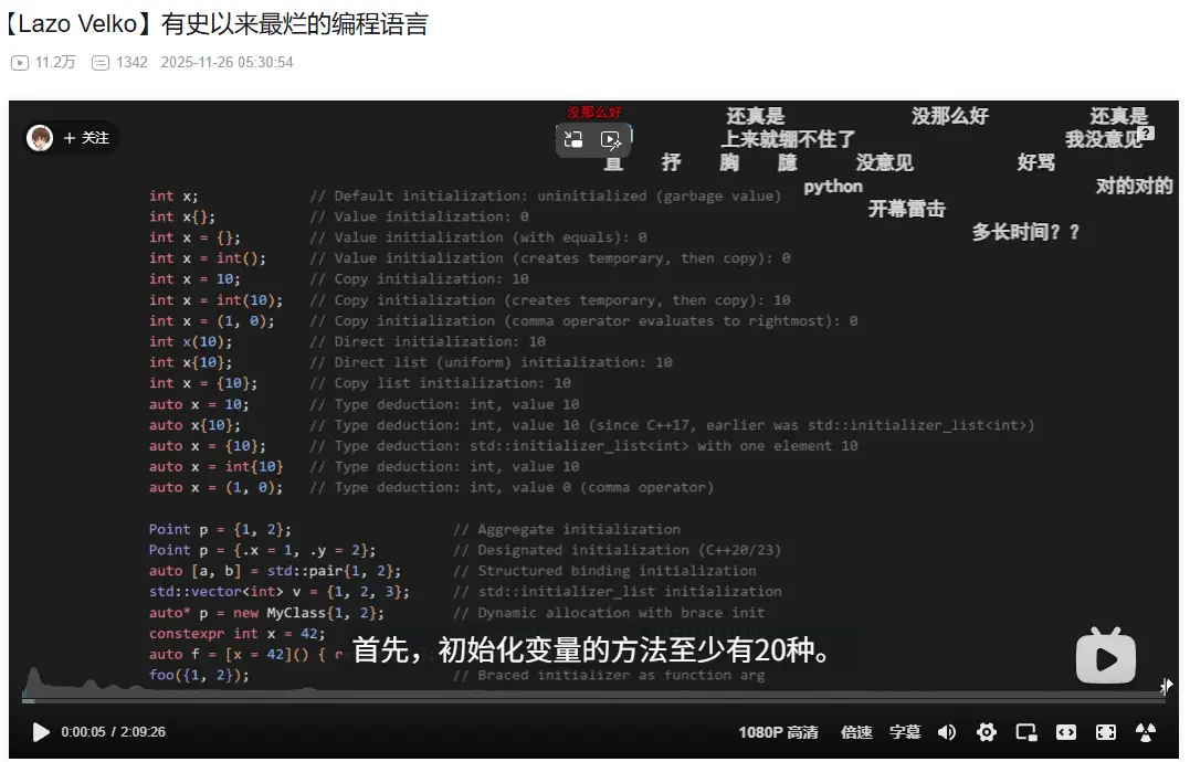 : B站有人把國外工程師怒噴C++兩小時的影片翻譯成中文