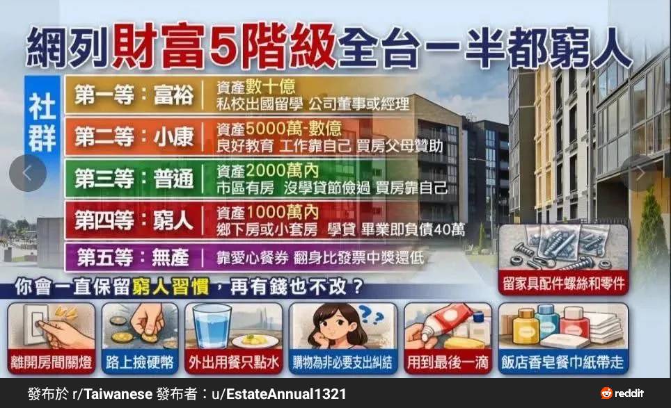 網列財富5階級全台一半都窮人