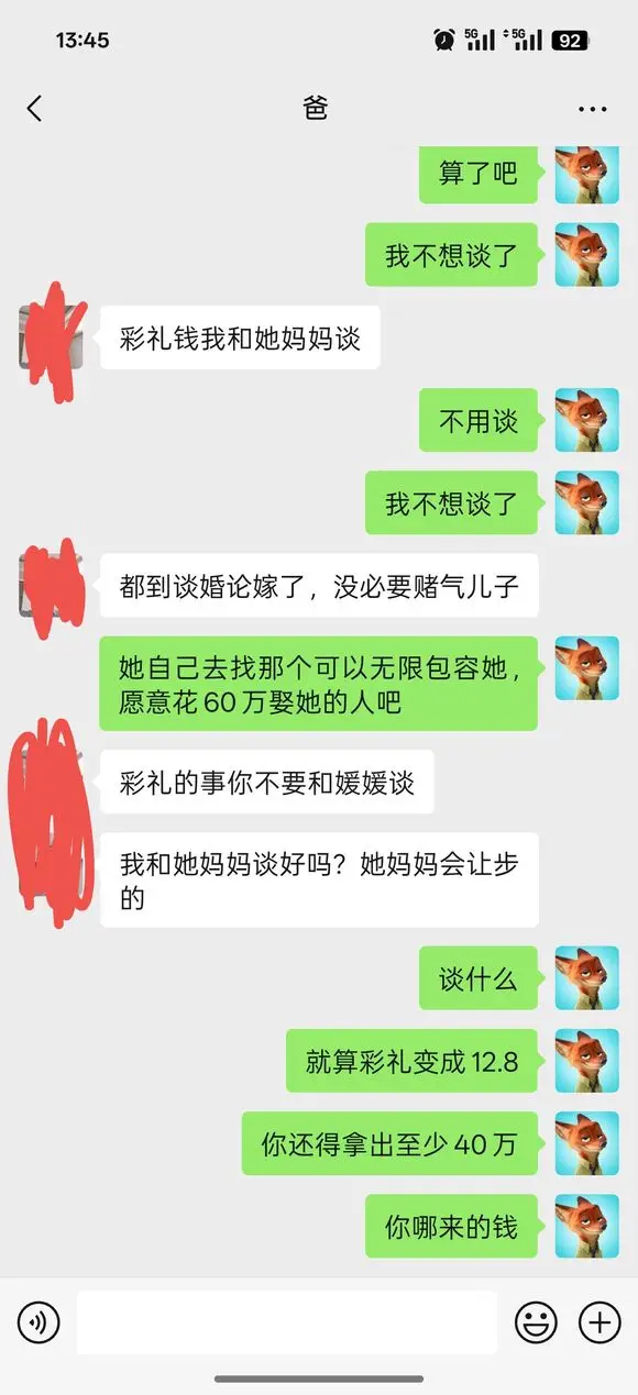 她是個小學的代課老師,一個月1800,她媽媽就是個小攤小販,她爸爸就是個學校裡的保安,家裡沒啥錢。我們家兩套老房子,一套新房,我們家隨便一套老房子都比她家房子好,但是她非得在新房結婚,逼我們家房子裝修。裝修完之後跟我說彩禮的問題,我說當初訂婚的時候不是給了嗎?她說什麼時候給了?誰家彩禮只給8.8萬?那是禮金,禮金是禮金,彩禮是彩禮,還要+20萬真是給我整懵了