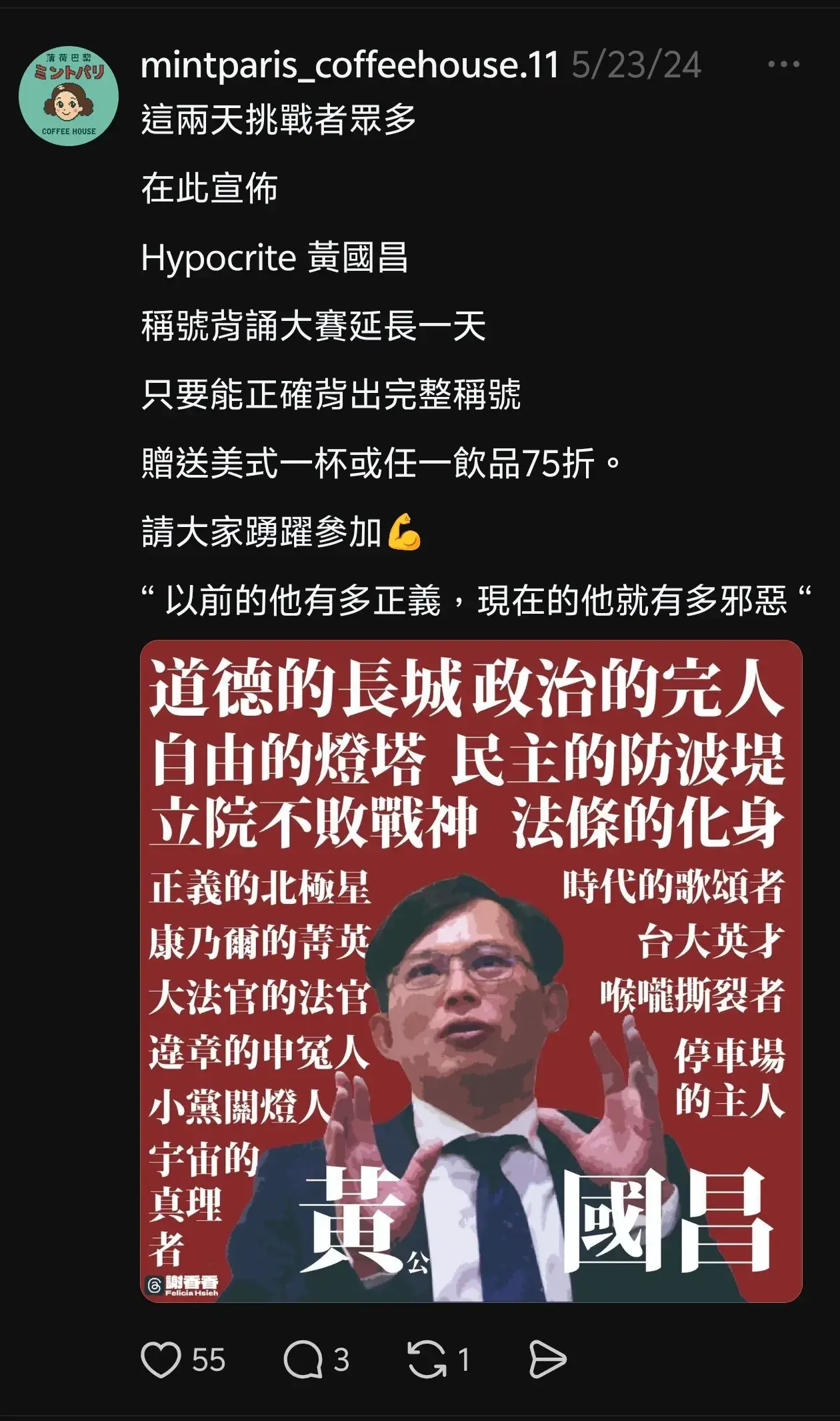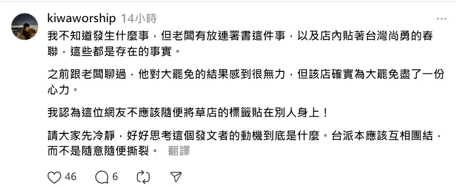 老闆在私人帳號發文批評政府被青鳥肉搜