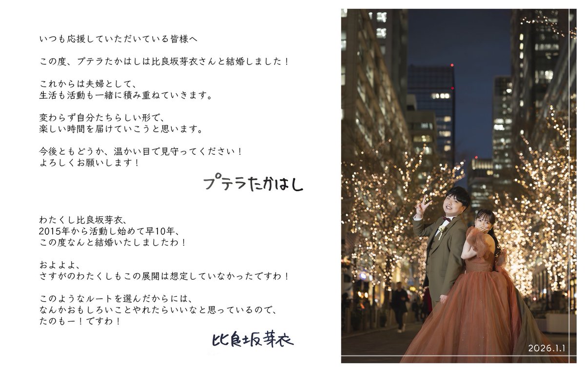: 雙方都在1/1 在推特上公布結婚消息