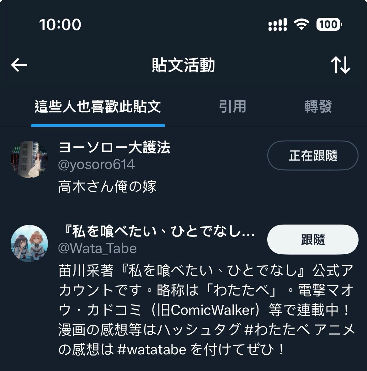 非人少女官推也給姆咪點讚了耶