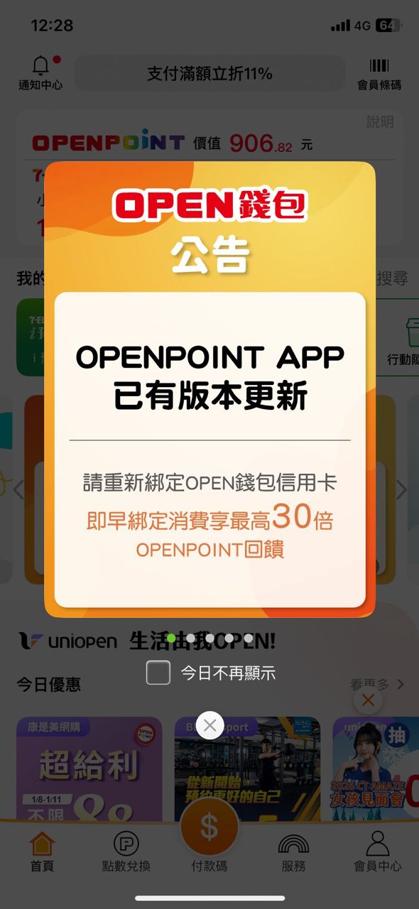 OPENPOINT APP改版 直接把原本綁定的信用卡移除 結帳超尷尬 = = 還好他們收很多種支付 --
