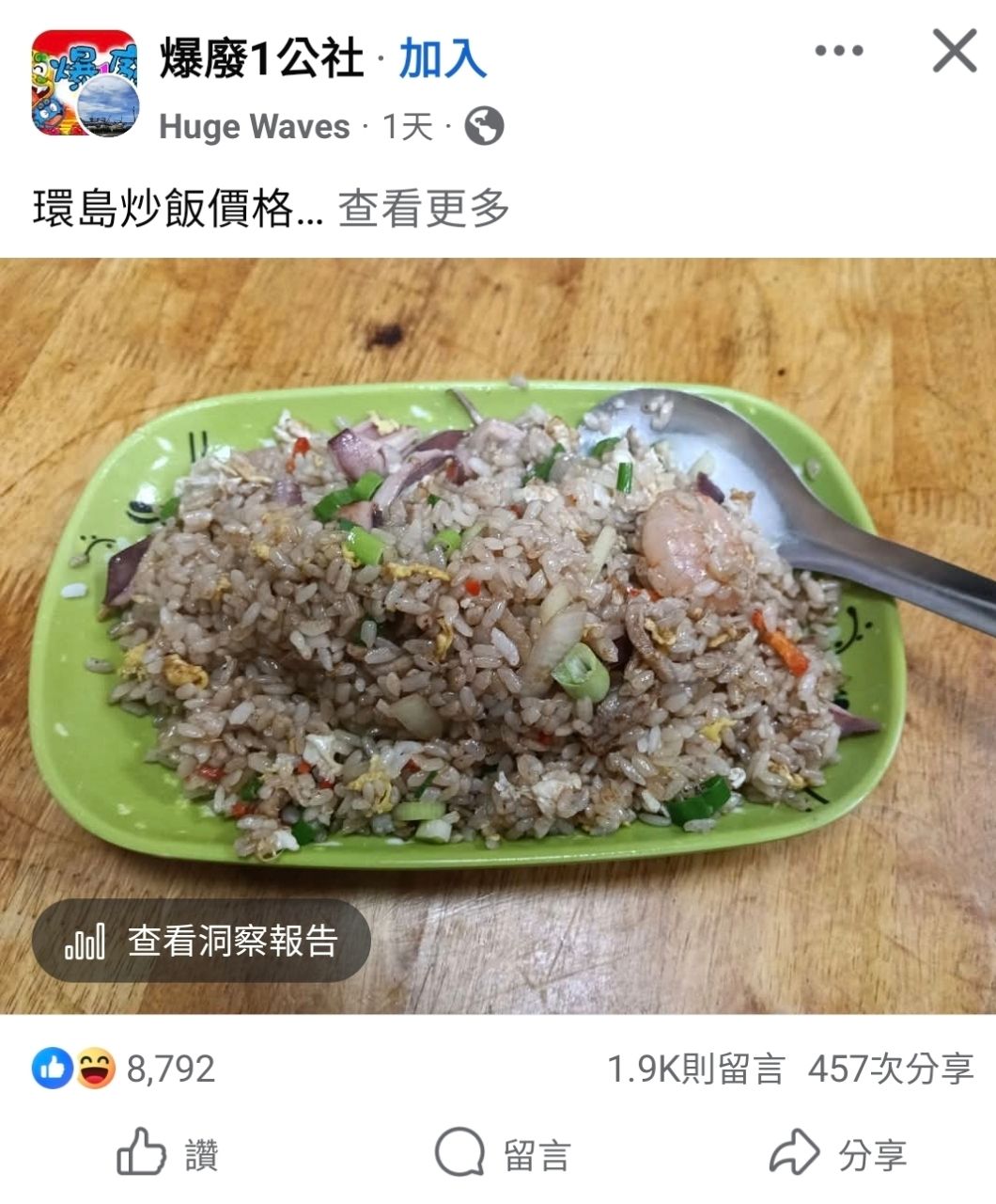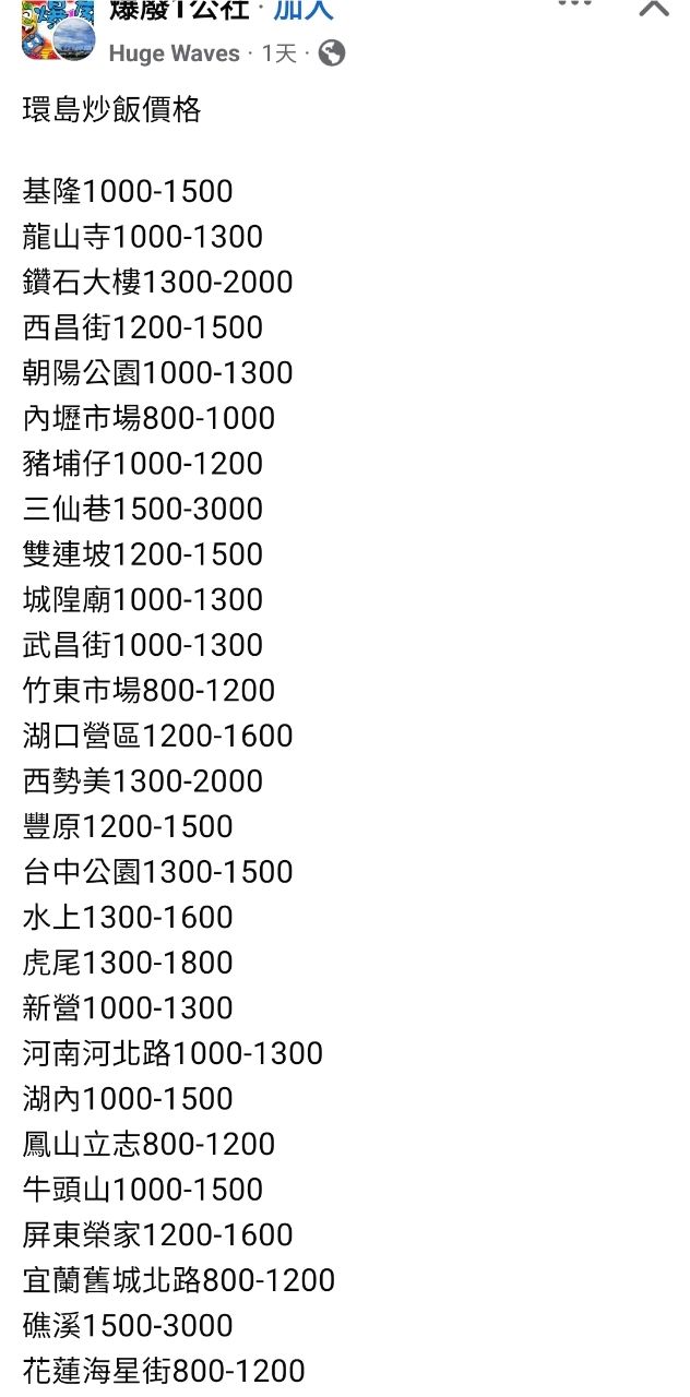 被臉書推播環島炒飯價格文