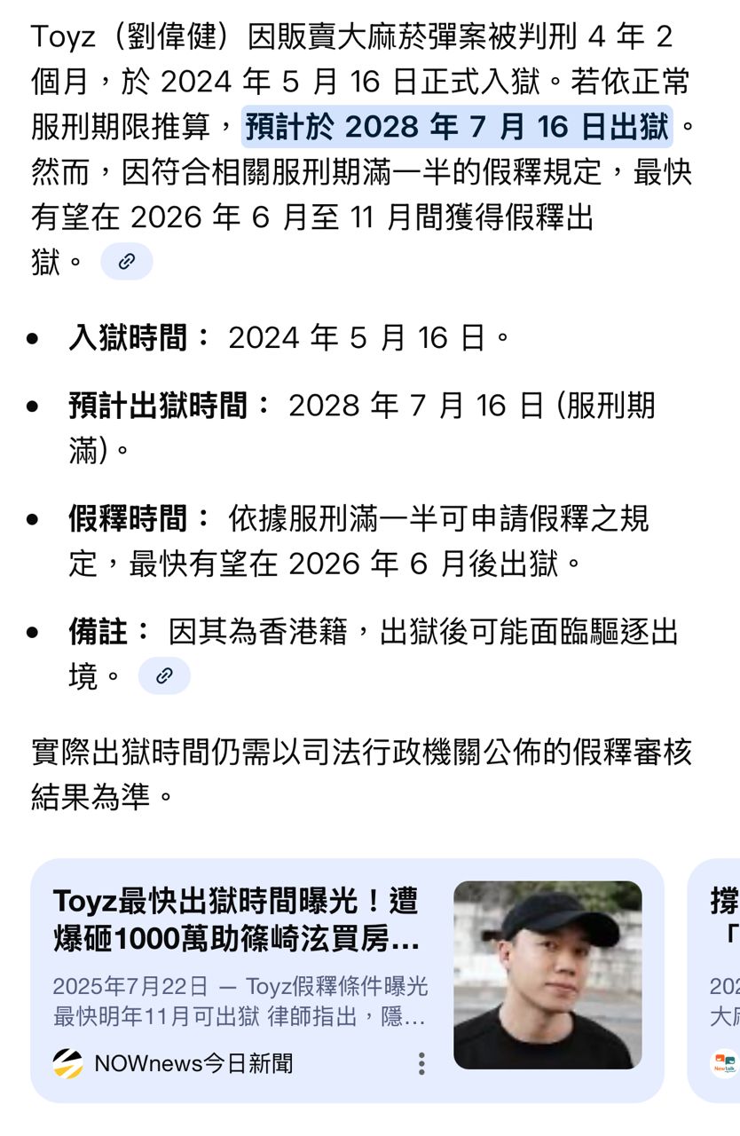 問AI說如果能假釋最快今年六月就放出來了耶