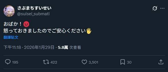 請粉絲們放心 星街說她有生氣了