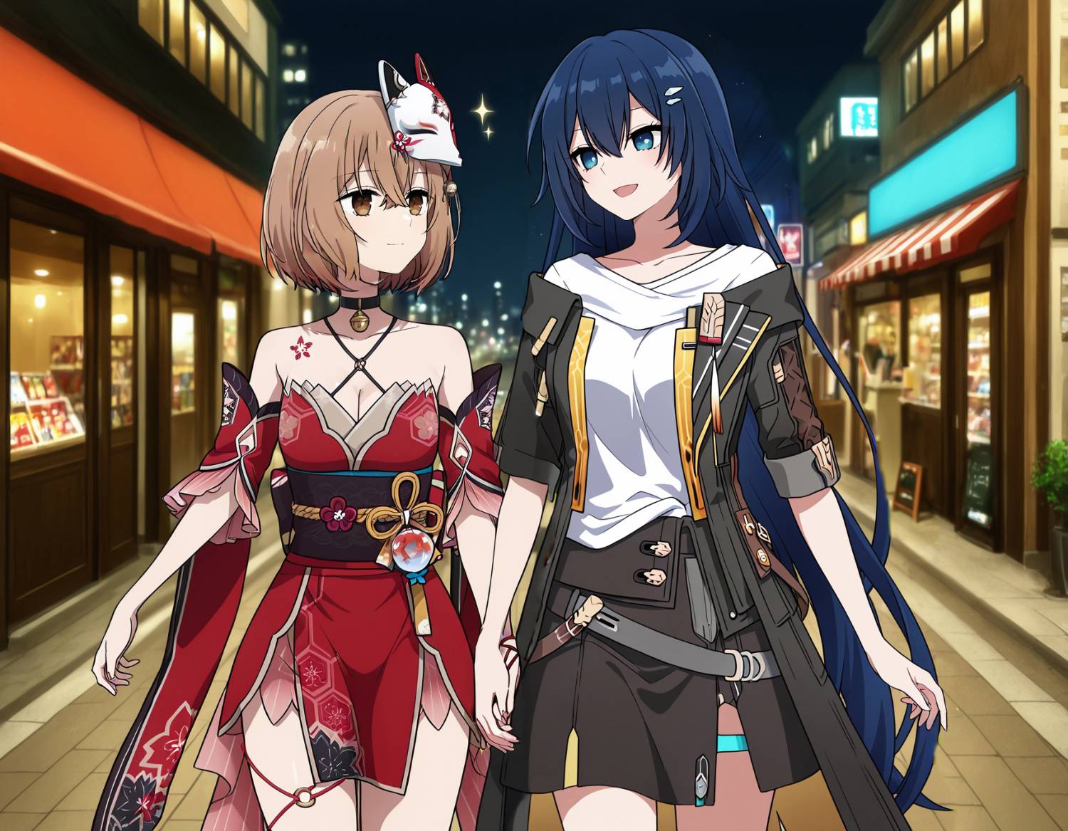 : 跟穿著花火衣服的八百歲比名子一起逛街的圖