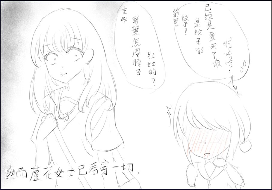 她大吃一驚 馬上用手遮住並強調是蚊子 畢竟夏天到了
