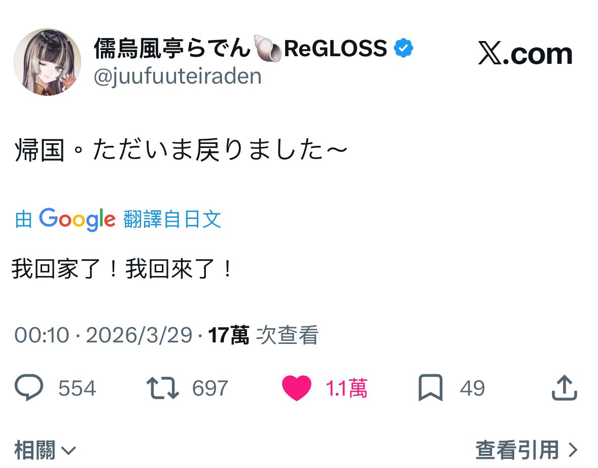 [閒聊] 拉電:歸國了