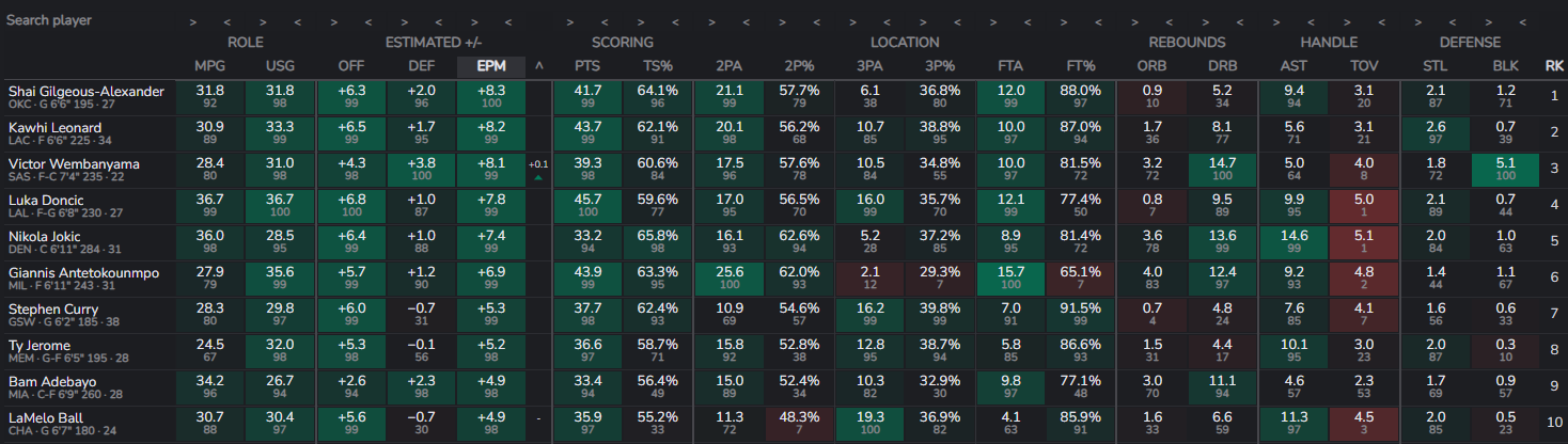 就聯盟前 10 的 EPM