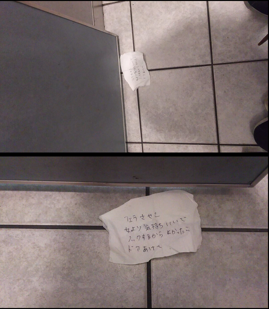 小紙條:我的技術比女人好,要就開門進來