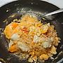 中午飯有剩有一點 加上外面下雨懶得出去 就隨便弄了 打了兩顆蛋再加兩片起司 意外的好吃.