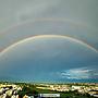 https://i.imgur.com/MTvf3le.jpg. 〔記者蔡宗勳/嘉義報導〕嘉義地區這陣子為午後雷陣雨型態,雖傾盆大雨造成一些淹水災情,但也意謂著滂沱大雨過後天氣轉晴,就有機會看到山區的美麗彩虹,「攝影達人」黃源明日前傍晚從嘉義縣市交界的台一省道牛稠溪橋附近拍攝到跨越整個嘉義縣的超級大