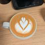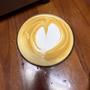 今天嘗試開圖後壓圖. 雖然形狀不佳但算是有壓到吧. 後續追加的兩個愛心就不是很好看;;. 然後我發現拉花前把牛奶前面倒掉一點點. 融合的時候就比較乾淨. 挺好的.