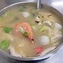 吃海產粥. 有蝦子 蛤蜊 蚵仔 魚丸 虱目魚 高麗菜. 猜這樣多少. ----. Sent from