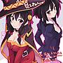 芸芸:惠惠!我們來比賽繞口令吧. 惠惠:好阿 那就拜託和真當裁判囉. 芸芸:紅青蛙綠青蛙黃青蛙. 惠惠:孩子青蛙在父母青蛙上面. 孫子青蛙在孩子青蛙上面. 曾孫子青蛙在孫子青蛙上面. 芸芸:魔術師咒語啾啾..啊~>//口//<. 惠惠:口齒不清呢 看來是我的勝利呢~. 和真:芸芸的胸部比較大所以獲勝