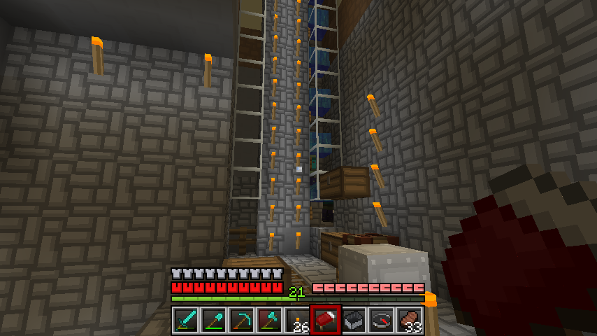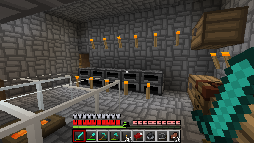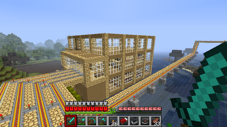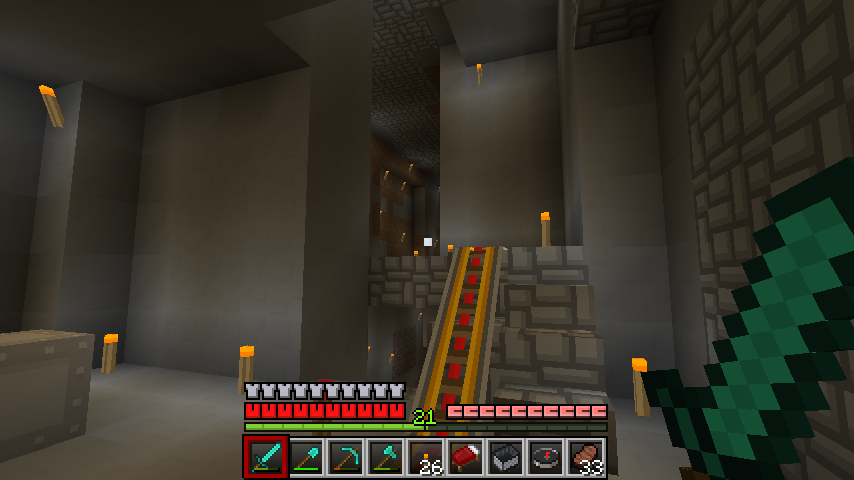 黃金都變成紅石鐵軌,鑽石庫存蓋一個10*10的大房子應該沒問題XD