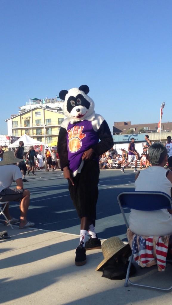 今天參加VBL沙灘街球聯盟,世平更是以「熊貓人」的形象亮相。