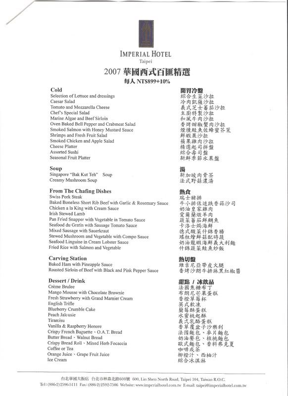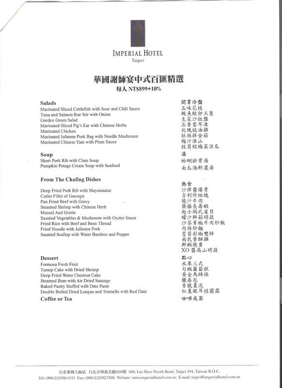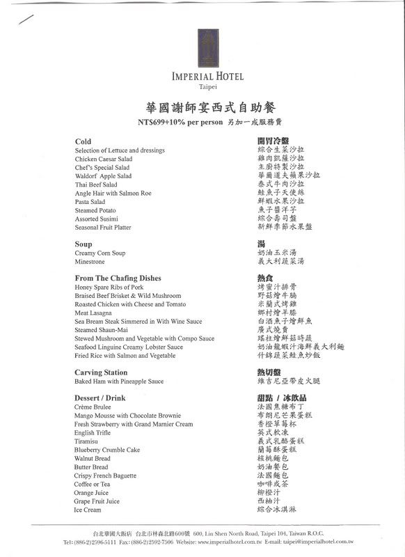 菜色有中西式 價錢有699跟899兩種方案 需加一成服務費