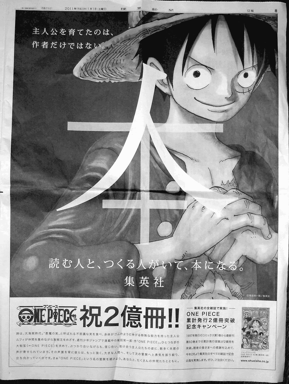 [情報] 魯夫登上讀賣新聞報紙元旦版面