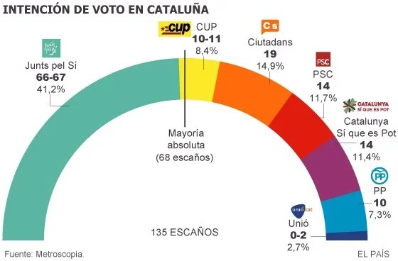 加泰隆尼亞剛於今年9月27日完成議會選舉。獨立派政黨聯盟「Junts pel Si」(西