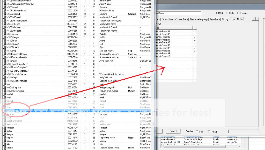 由於Narri是nord女性,所以在左邊character裡面找race